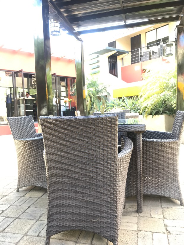 I like to do a lot of reading when I travel and usually quite a variety. I Started with The Tuscan Child and How to Relax. Working on 9 Strangers, The Seasons of Life and Seven Strategies to Success and Happiness. So I read for awhile and took a little nap. So much of my travels are in different time zones. Here I am just two hours ahead, but I know to set an alarm. I decided to go out for dinner rather than stay in. I asked the receptionist where J should go. Still not sure what they have to eat here so when asked, I asked for carne. She said that I could walk 2 kilometers and then cross the road at the light. I remembered the Gallaria Mall when we drove in. So I walked down the street, it was still light. Lots of traffic. As I got close to the light I heard and saw a small outdoor concert venue that looked like a tiny paper Rome Collessium. Some one was practicing for later on lots of security all around. Walked to the mall. There were many high end restaurants. I went to the place that was suggested. It was a steakhouse but everything was huge portions and served with mashed potatos, which I don’t eat. I ordered tuna carpaccio with a white wine and beef carpaccio with a red. It was pretty good. Uber works here if you have Internet. Took a taxi. He apparently couldn’t read. I gave him the business card with the Hotel Wayak listed and he took me to the Hyatt. We worked it out. I was definitely over charged, but in the beginning of a trip it almost seems normal. Never take the firstmode of transportation that you are offered at the airport. A travel tip from experience.