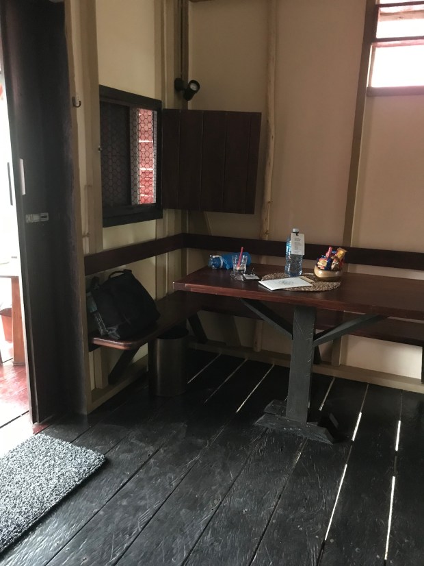 I chose the Wayak Hotel because it had a free shuttle, it didn’t. Because of WIFI, it doesn’t work yet, gated and guarded, yes. Bar and restaurant not open. Close to the airport, nope not that either. I went next door to an open air restaurant. Only a few buffet things. Cold, tough meat. No alcohol. There was an interesting condiment on the table, maybe a garlic vinegar. I went back to the hotel to see if I could find a different hotel. No internet. Then I asked where I could get a