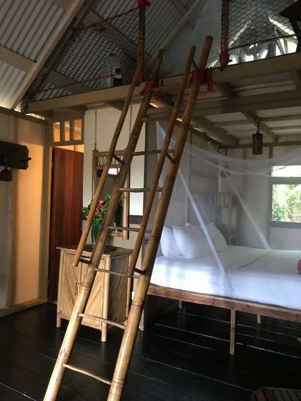 Arrived at Little Corn Island. The panga held about 24 people. A like like the Stars and Stripes ride in San Diego. Rough and wet! The island is bigger than I thought. A man was waiting to pick me up. He put my little bag into a wheel barrow and guided me to my bungalow. Took about 20 minutes past farms, through the jungle mostly dirt paths. Arrived at the Little Corn Beach and Bungalows where a Mai Tai was waiting for me by a cute boy named J. He took my Passport and showed me my bungalow. It is awesome!!!Here are a few pics from inside: