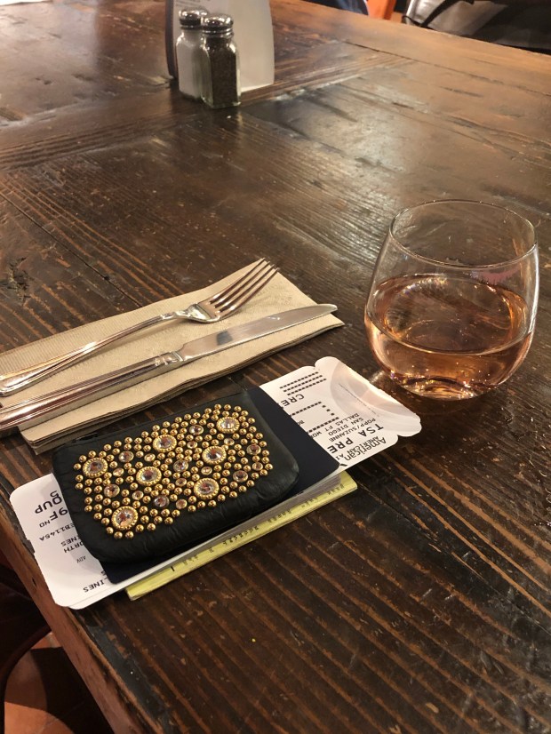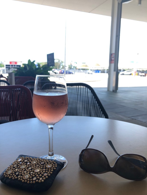 I am at the Cairns airport waiting for Megan. She is in the air which is good! She arrived in Sydney as I was leaving for Cairns. Her messages were not hopeful. She had issues in the Sydney airport too, as I did, then had to check and pay for her bag and was delayed on the tarmac. Luckily, WiFi is better in airports so I could look up her flight info and see that she was on her way. I am waiting outside the airport having a glass of wine.