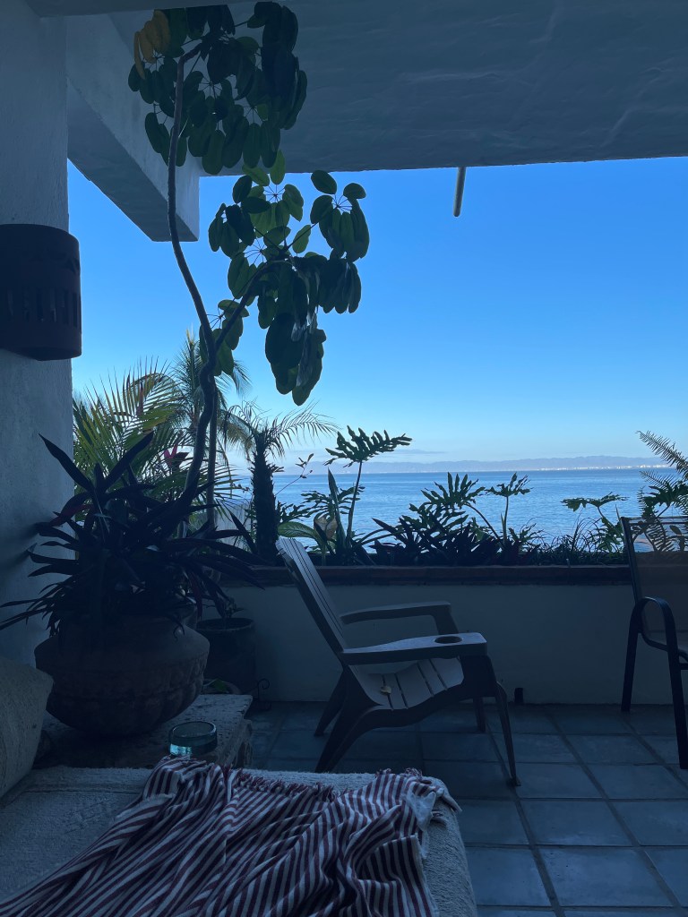 So after a day of reading and thinking, can’t quite meditate, but I try. Maybe writing is my meditation.. especially in this peaceful place on the balcony, seeing and listening to the waves crash, hearing a tropical bird sing and being still.