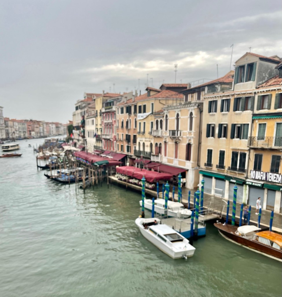 I did not sleep well but did get a lot of reading done. I got up early and walked to the Rialto fish market. Years ago, my daughter and I stayed for a week in a flat and went the market and we bought the ugliest fish we could find and cooked it up. Some was good some not! I love fresh markets. It was a little rainy so I ducked into a cafe for a cappuccino and a sandwich.
