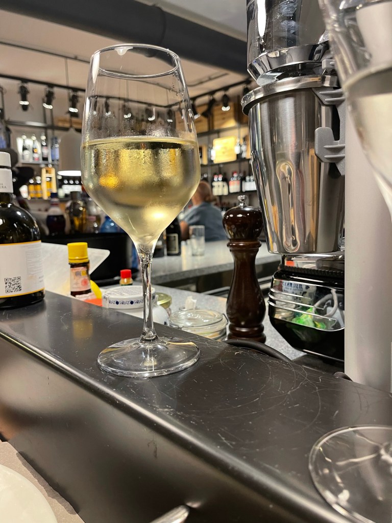 So I go back to my room for a quick shower and when I come down to go to dinner , my new friends invite back in the restaurant. Restaurante Centrale Pizzeria. Micky, the manager wanted to take me to dinner but I refused, but I let him buy me dinner at the bar. Amazing spaghetti con vongole, more Prosecco and a white and finally some limoncello. And the bread! Yummy