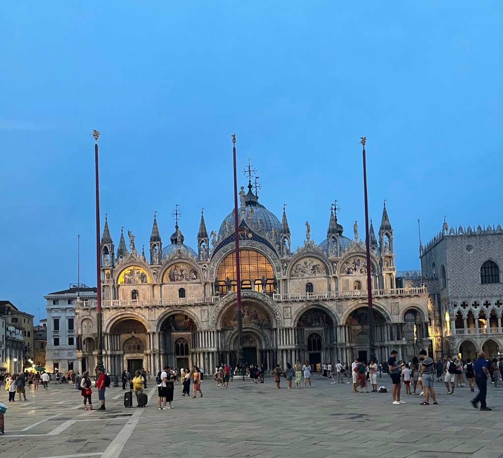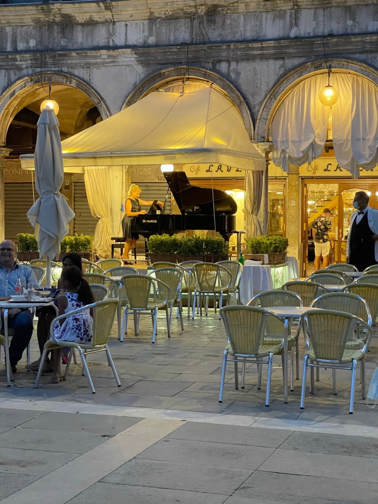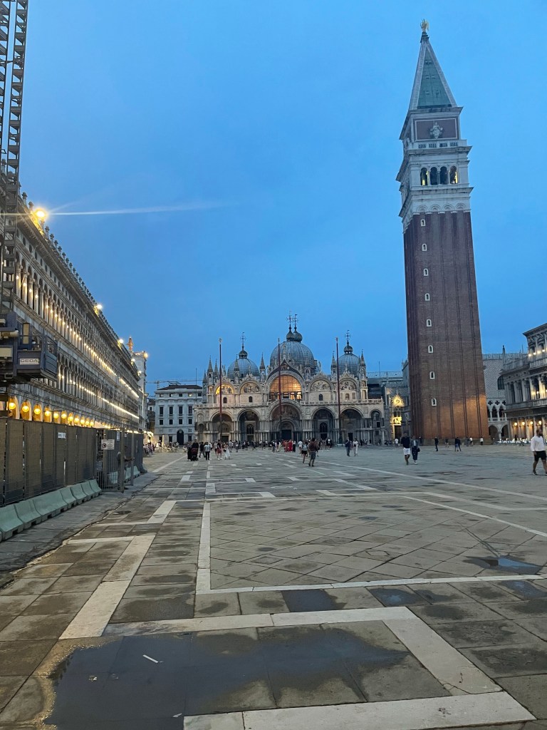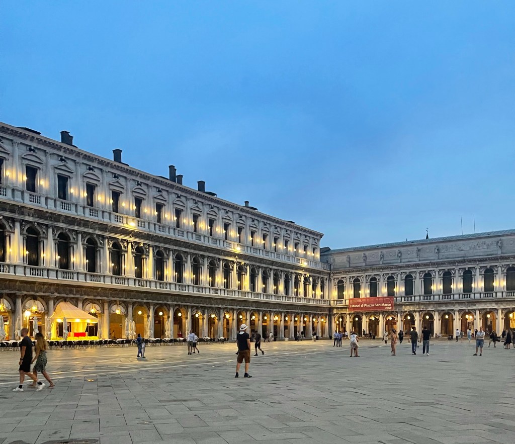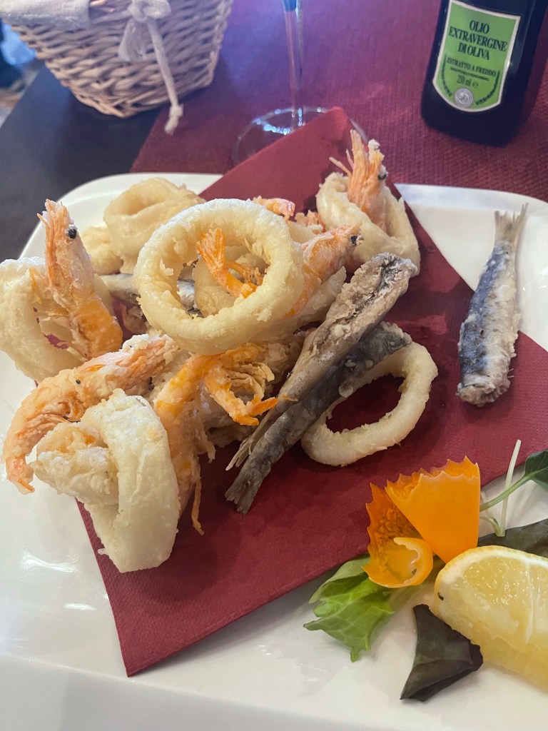 As I wandered around some more, I happened into another Irish Pub. I had been there before. It wasn’t so much that I wanted to eat here but just to get my bearings. I ordered an Aperol Spritz and read my book and watched the Olympic’s. The rain stopped so it was my chance to find the right place to eat. I couldn’t eat any more bread! I ended up at a small place called La Serenissima. With my white wine I had some Bresaola and frito misto. Bresaola is like carpaccio. I asked for some pesto. I could smell it from the kitchen, but received some mayonnaise. I paid my bill and they served me the requisite Lemoncello.