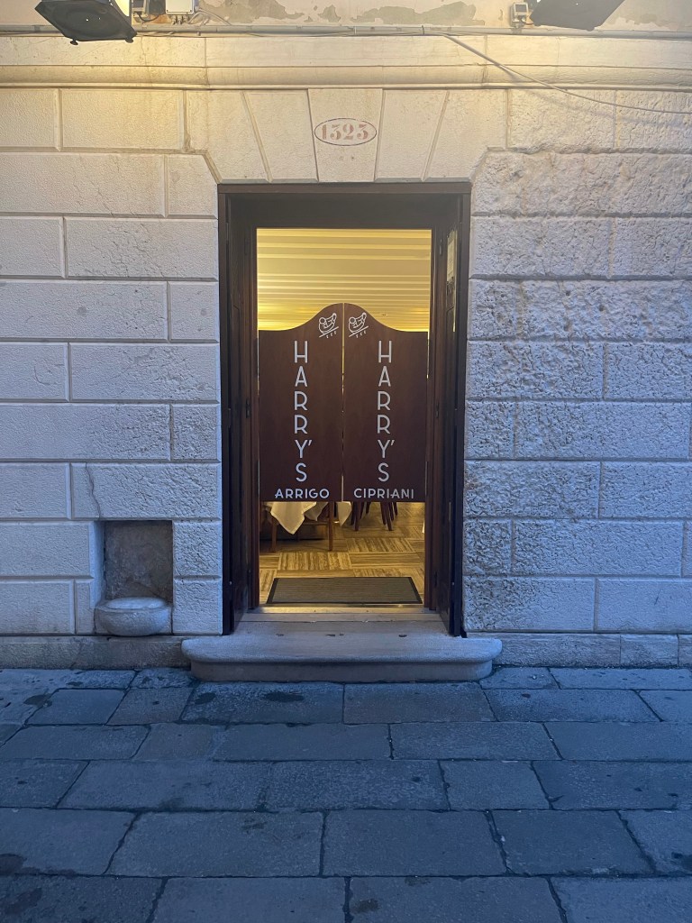 Then I walked to Harry’s Bar. Years ago I planned to meet some friends there one day at 4 pm. They were coming form England. We were late. As I was walking fast to get to Harry’s, someone jumped me, it was my firmed. We had the famous Bellinis at Harry’s.
