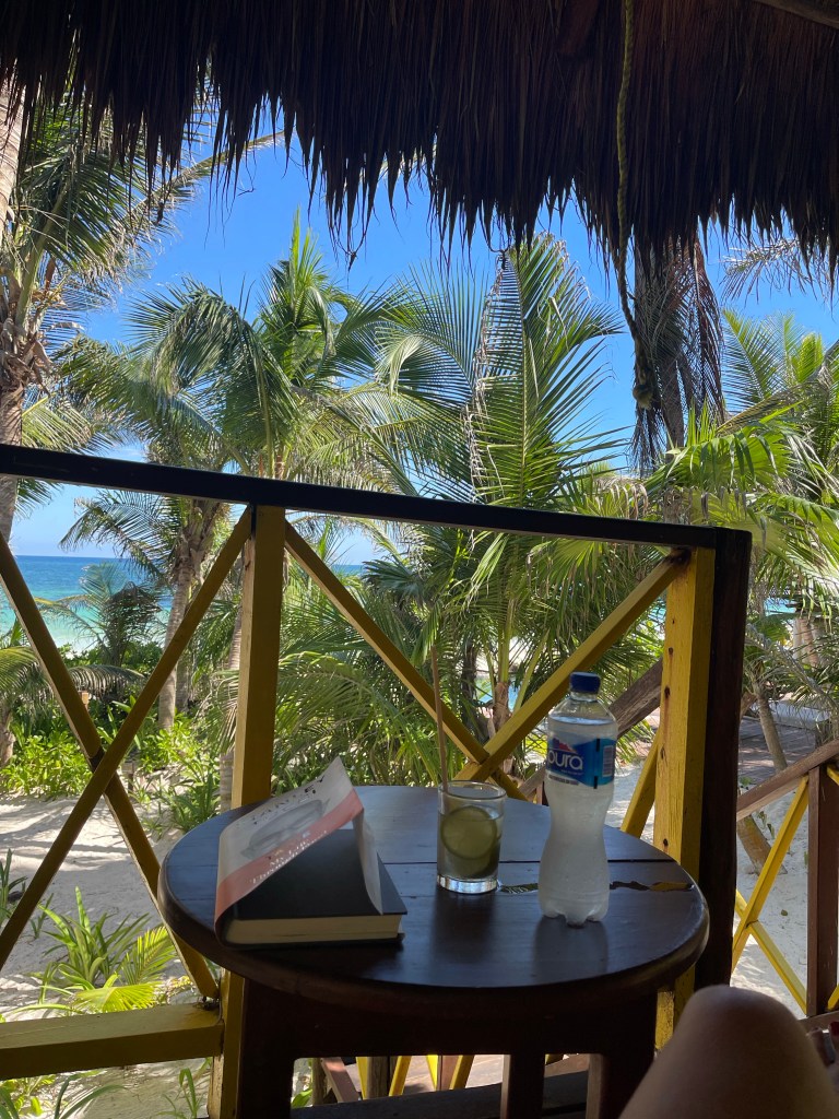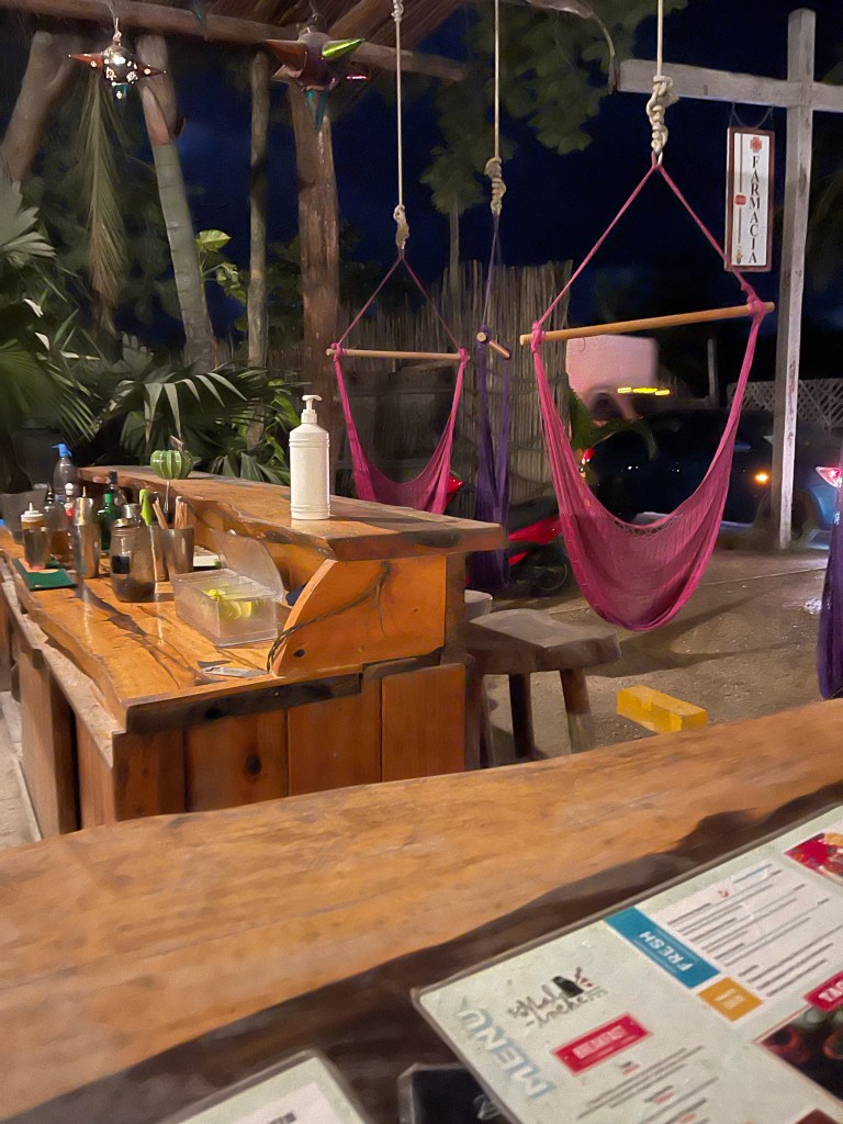 We planned to stay on the beach for three nights then maybe move into the city of Tulum but quickly changed our minds. The beach was too nice to leave. After a few Mezcals and diet squirt we walked down the beach around sunset then on to the maid road which is mostly dirt and potholes. We were barefoot but found a little taco bar with amazing oct tacos! Yummy. I live the sauces and spice here. Everything is so fresh.