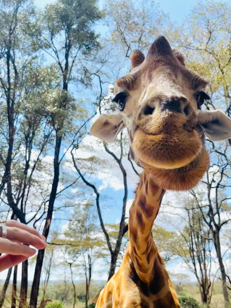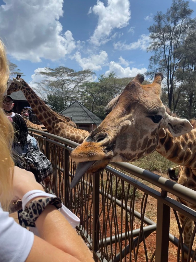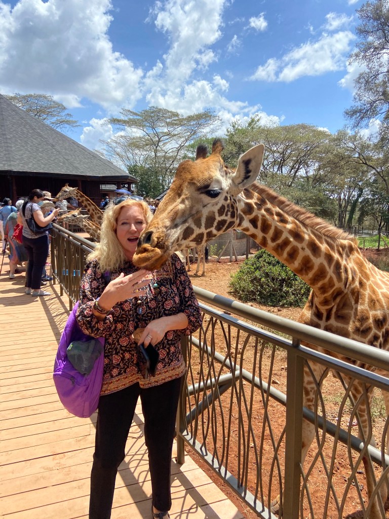 The Giraffe Center is pretty much in our host, Janet’s backyard. We each received a half coconut filled with pellets to feed the giraffes. So much fun!!