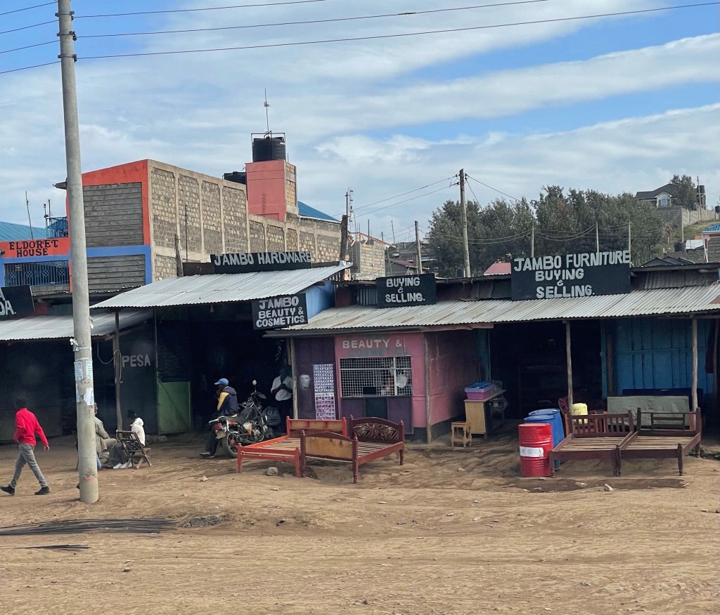 We are driving to a Primary school in Bahati near Nukuru. We took an Uber to meet the van driver. It’s an old rickety van with broken seats and ill functioning seatbelts. The roads have a lot of pot holes. Traffic is busy with semis and other large trucks driving north and then south to Uganda and Sudan. It’s a three hour drive.