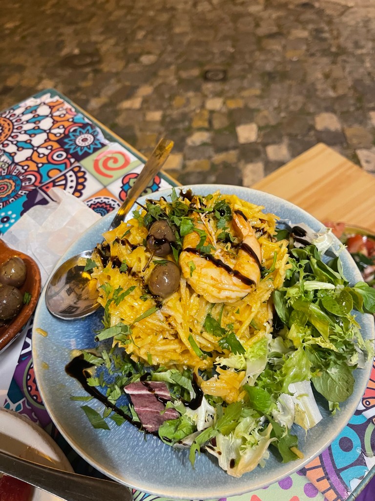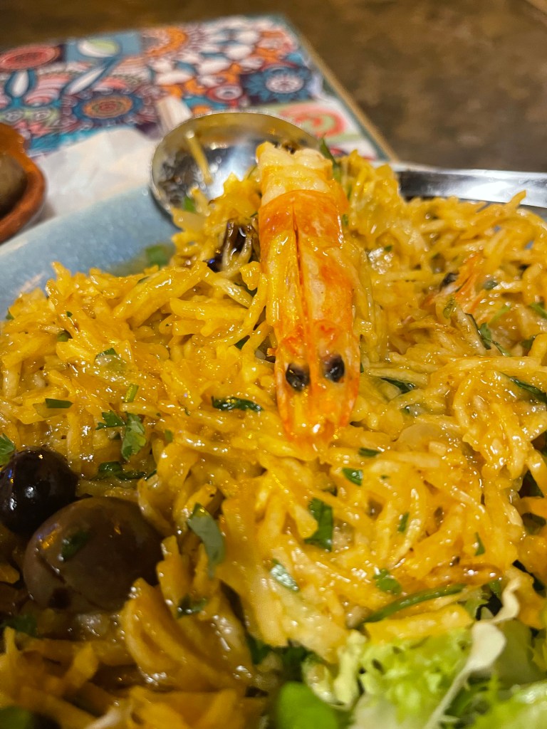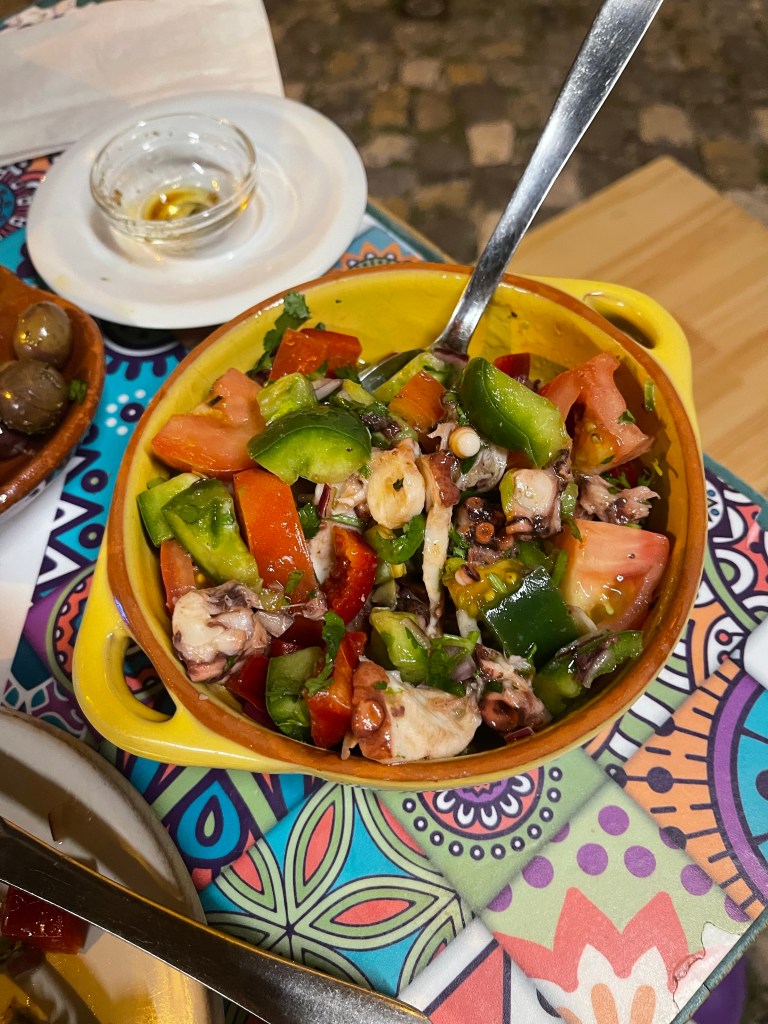 The directions were accurate and I found it!! There was a line as expected. I waited about 45 minutes, I didn’t take the first table available because it was too central an I knew that I would hate sitting in front of everyone in line, feeling like a loser, alone. Lol, I just wanted a table with a better view of all of the people. This restaurant was outside only, on a bit of a slope, tiny tables. I ordered some white wine, got red, but went with it. Bread, olive oil, olives, octopus salad and some amazing shrimp and crunchy rice. All outstanding! Worth it. Thanks George and Grace.