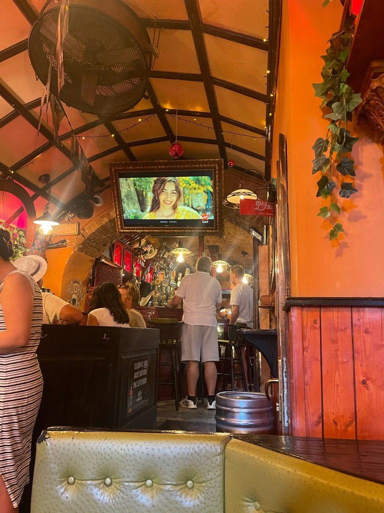 It rained pretty hard for about 20 minutes. we arrived at San Paola Bar about 5:15. Our table was taken but we had a different one for a bit and then moved to ours. Once we got drinks we figured it out. They weren’t letting people in the center area because the race was postponed. I looked at the track. There were still some puddles. We slowly made our way back to the flat. Jenny and I stopped for more food and checked out some jewelry and Mark and the girls had some gelato. Apps on the abandoned balcony, dinner a movie wine and Lemoncello