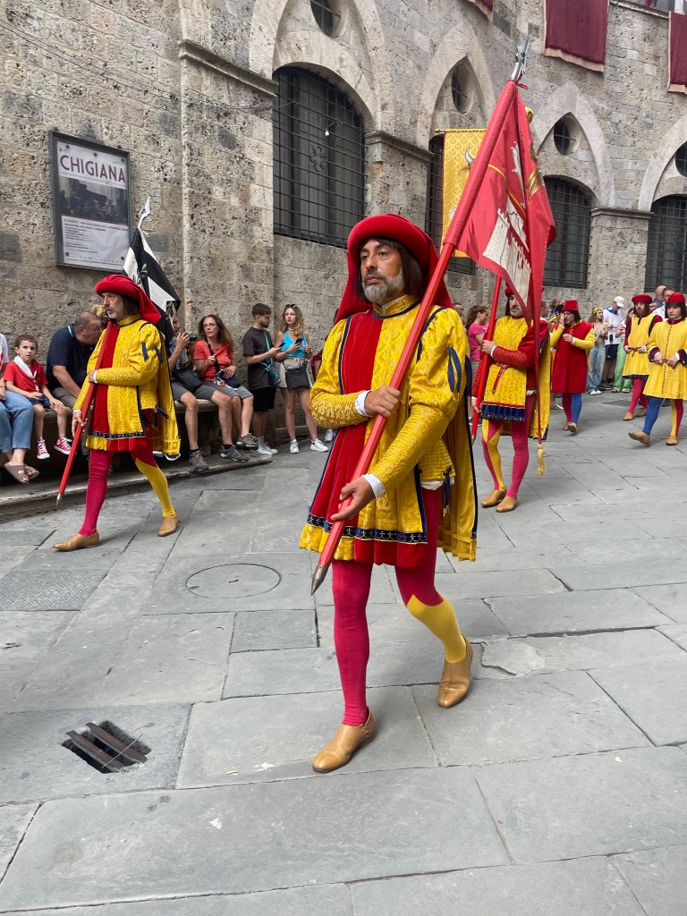 Lots of parades of the different contradas. At the end of the day they must have been so sweaty and wet from the rain. Many wore wigs.