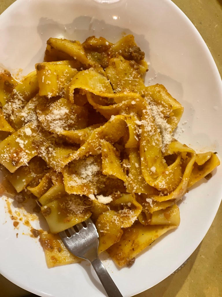 Kind of a lazy day, wait that was yesterday and the same for today. Walked around both days, dodging the storms. Some were quite violent. Last night it thundered for over an hour, with constant flashes of lightening. I had reservations for dinner at a Michelin restaurant but I cancelled because I was too full from lunch. Lunch was at the Gato restaurant across the street. Great pappardelle with ragu.