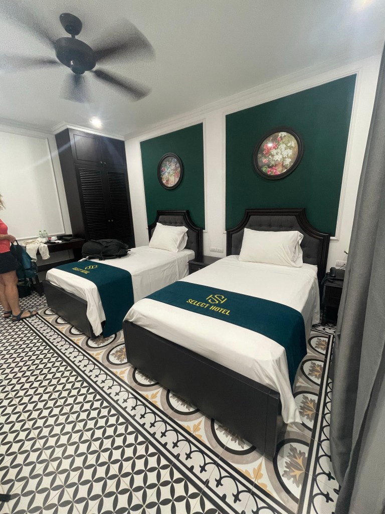 Flight was an easy 1.5 hours. Negotiations with taxi people. One guy was trying to grab my backpack off of me to put in a car. He got dagger eyes! We knew it would be about 45 min drive but this guy couldn’t find our place. We couldn’t get internet so it was difficult. We finally suggested that he call the hotel I think he called them about 4 times to get direction. He graciously took the 500.000 dong we agreed upon, but was visibly pissed. Hotel was good enough. A little dirty we realized in the morning. We walked down the street to a BBQ place, wine and seafood. Back to hotel, with our own entertainment.