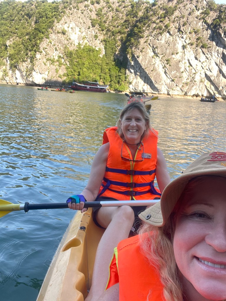 Unpacked a little still unsure if we are two nights on the boat or one night here and one night at a bungalow. We thought the first day was hiking and biking but now it’s swimming and kayaking today. Aapparently the weather is better today than it will be tomorrow.