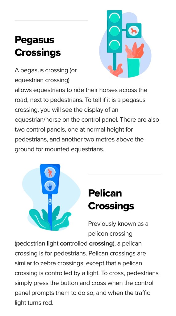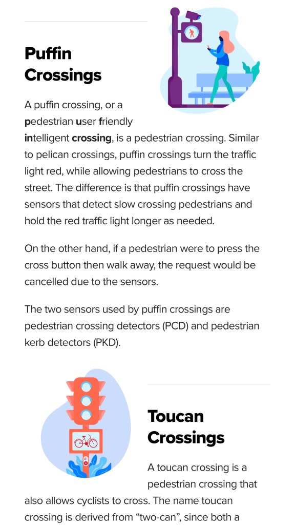 Another interesting thing here was that I saw signs for Pelican crossing several times so I looked it up.