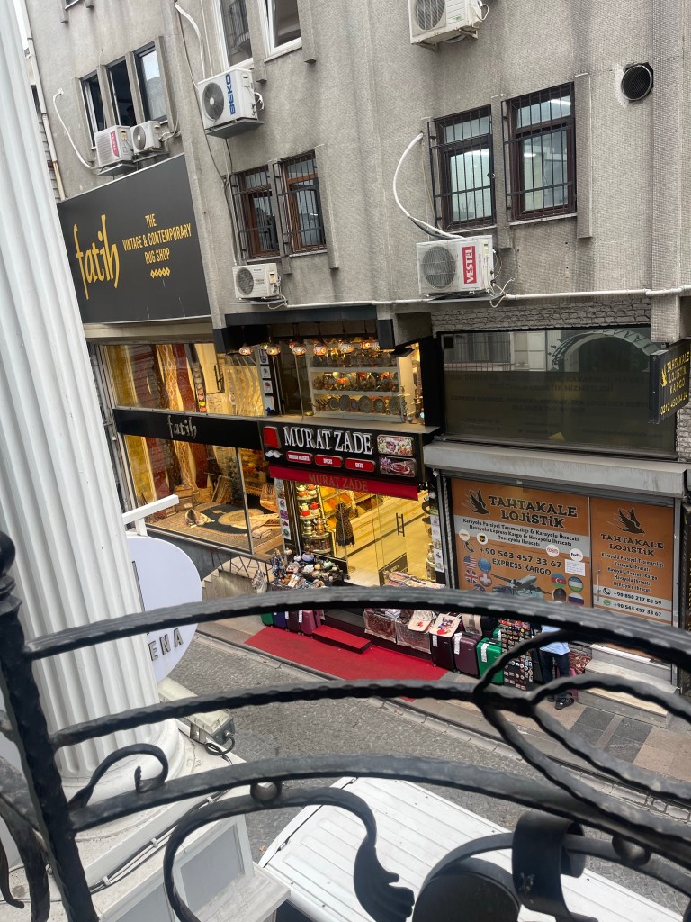 So after we pulled into the dock, I wondered how they would get people back to hotels. I heard my hotel and knew that there was only one person going to my hotel. They rest of the people on my bus were going to a different hotel. I showed the driver the name of my hotel before I got on the bus! Yes I did. Next time I will show him the hotel business card, which I always grab but he seemed confident that he knew where my hotel was. He seemed to go the long way out of the way, maybe lost but, yes so much traffic. He dropped everyone off but me. I actually knew where I was and could have walked home. But no I let him go. At another spot, I came up to the front of the bus, I still knew where I was but he didn’t even look at me. My maps were on so when he was actually going across the bridge to the other side of Istanbul, I went up to him as he was driving and showed him the hotel address. He was very confused. He had me stay in the shot gun seat so he could see my map. My phone now had 6% power. He got me close but not quite but I knew where I was. He just waved me in the right direction. So I got off the bus. Plugged my phone in to my extra battery and started walked in the other direction. A very dapper Turkish man stopped me and told me no you need to go the other direction. I said, “yes I know! that stupid driver has been driving around for an hour and I saw a shop down the hill.” He laughed and said, “Yes crazy drivers here.” So I walked in the opposite direction to see this shop. I looked at a few things and headed back. I took this picture