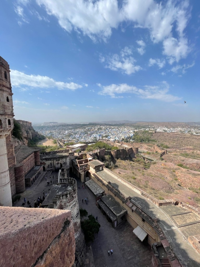 The Mehrangarh Fort was the first site to see. They actually put an elevator in so people could quickly get to the top and walk down. It was high. The view from the top was incredible. You really could see the blue city. Lots of stories why it’s blue, Brahmins get the blue paint, keeps termites out, and others. It’s pretty.
