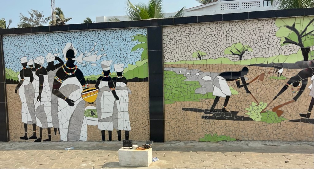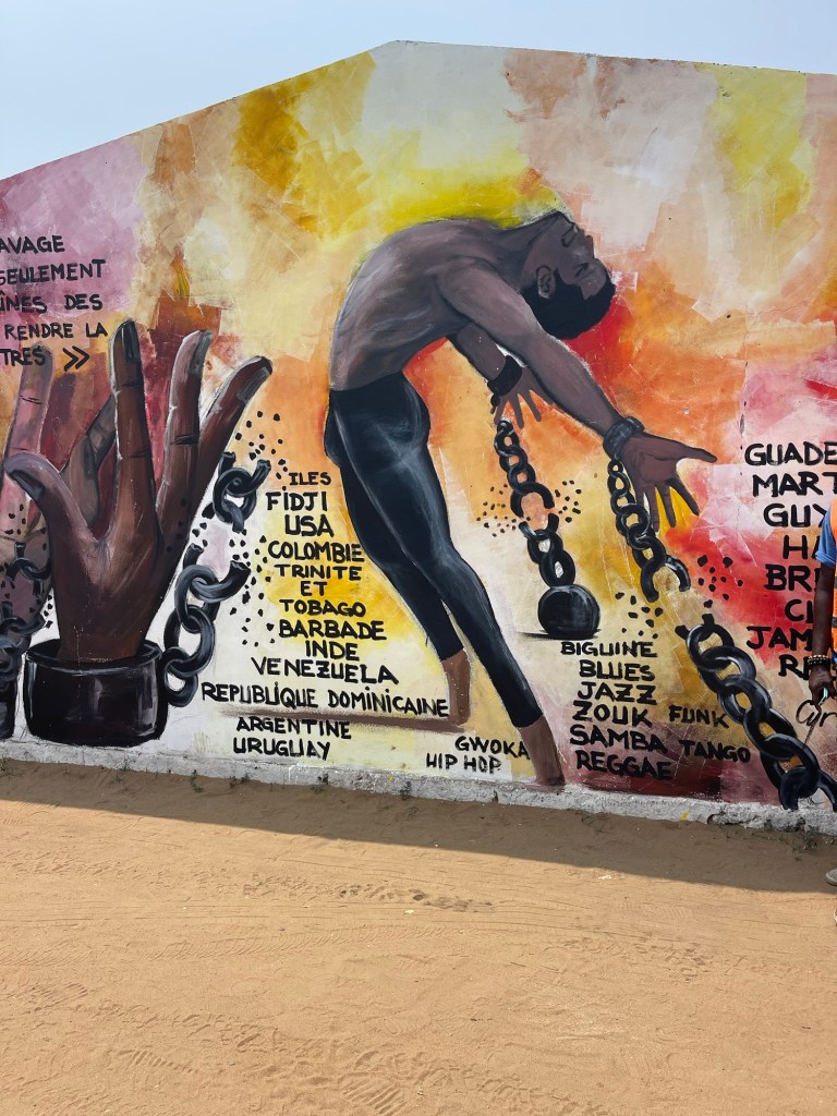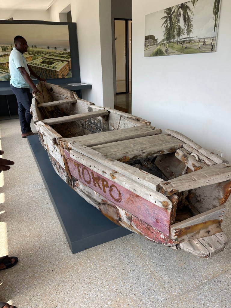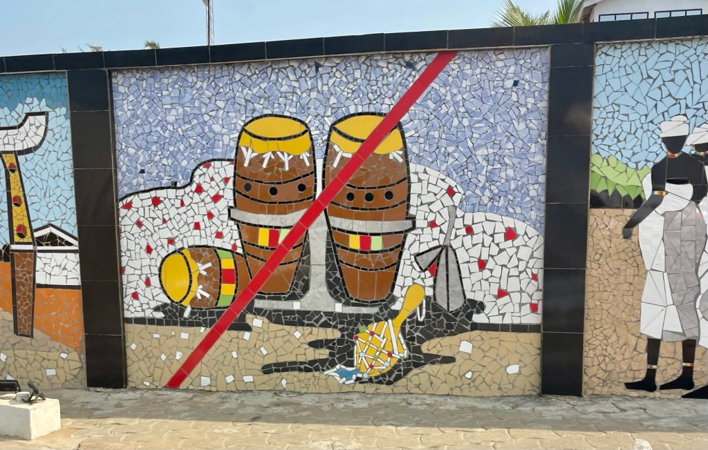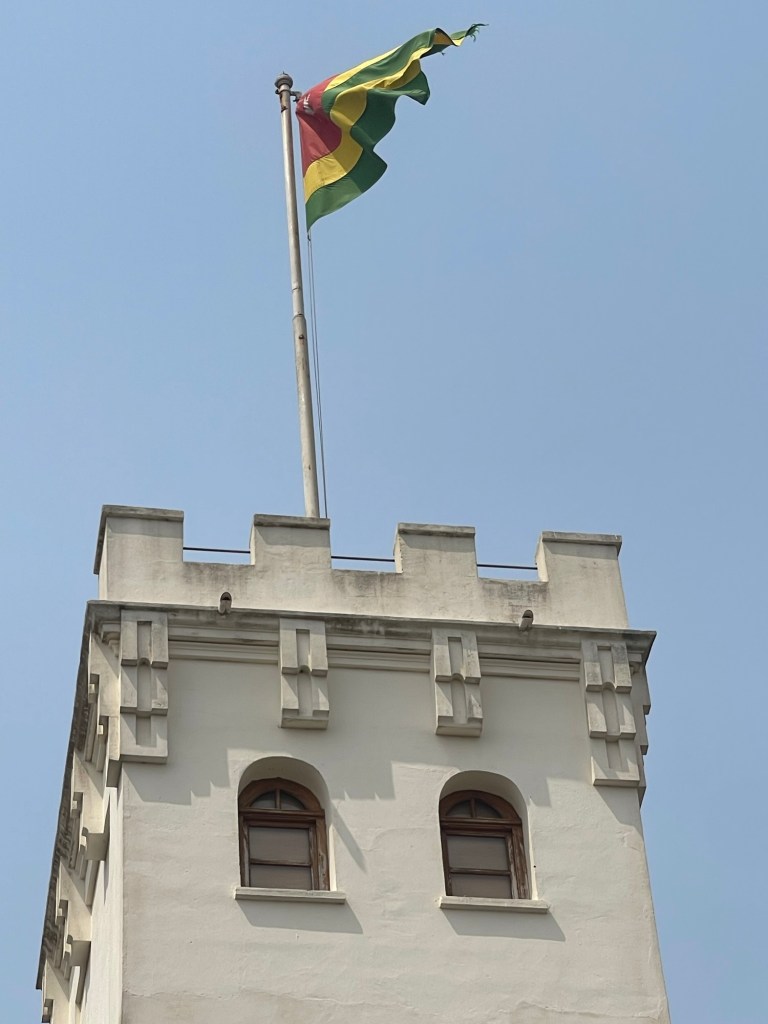 Built by the Germans in the late 1800’s. Then it was the split after WW1 to French and English. Later the residence for the Prime Minister of Lome. It was closed down after a massacre. Rebuilt and now a museum of local artists. I learned new history and culture. Like the NanaBenz.These ladies that got rich from selling fabrics. They were grandmothers that drove Mercedes with their new wealth. Their different fabrics mean different things, like a single woman or the get out fabric, “You go out, I go out.” Meaning you cheat on me, I cheat on you.