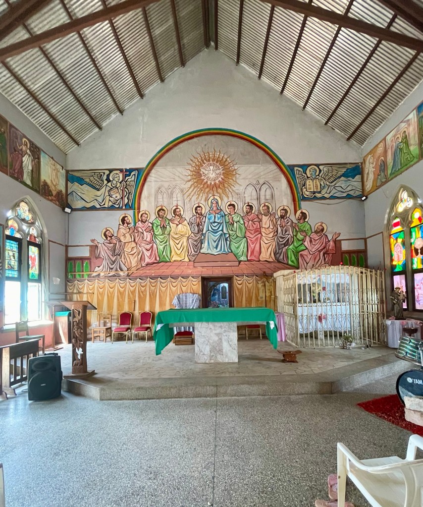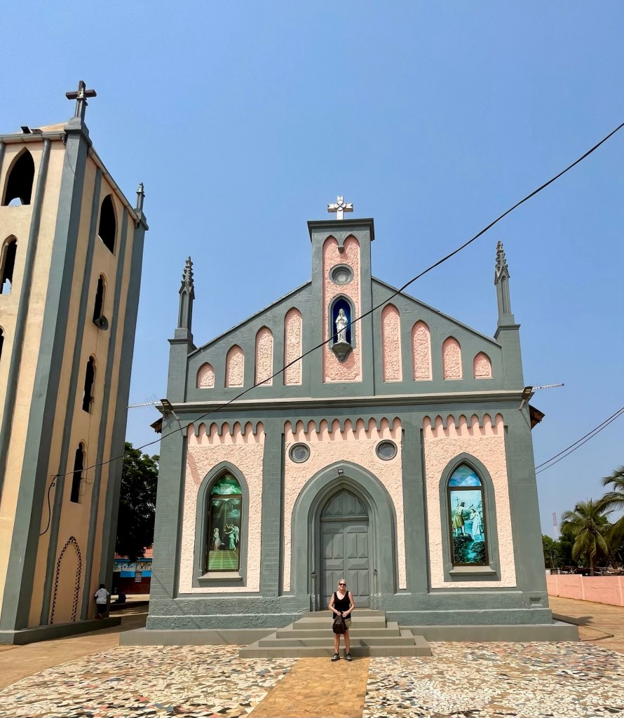We arrived in Togoville in about 15 minutes. After putting my sweaty socks over my sandy feet we walked up to the church. Notre Dame du Lac. It was built by the Germans in 1910 as Protestant Vhurch, then it became a Catholic Church some time later.