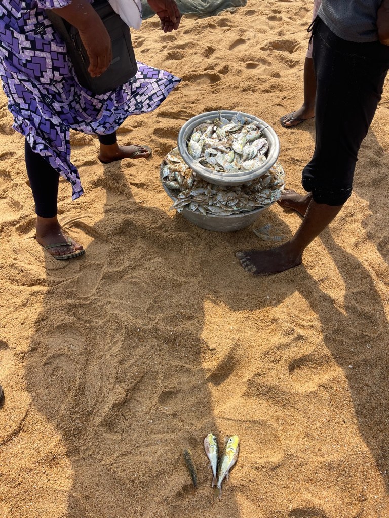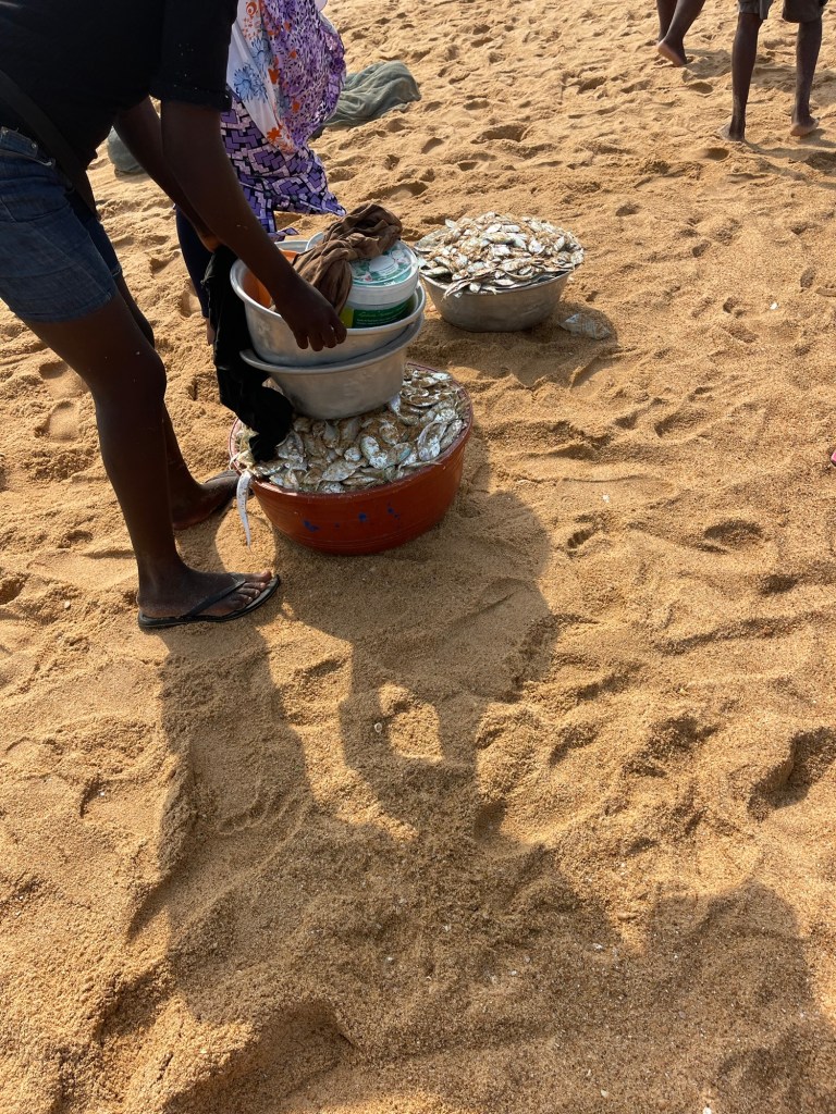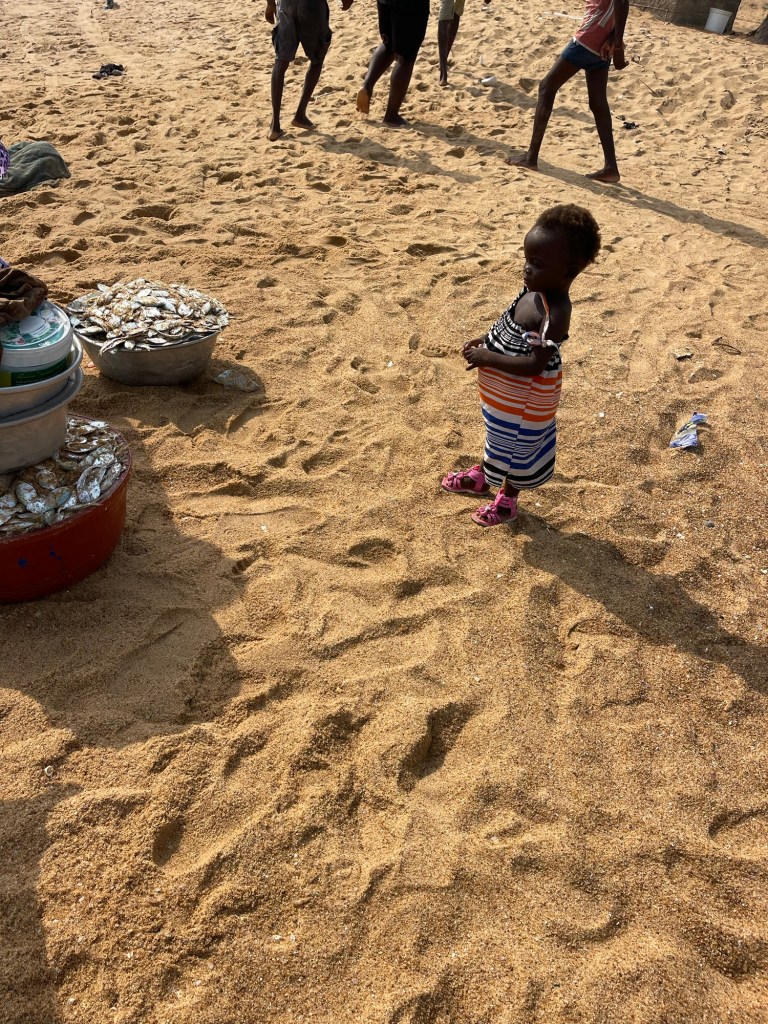 Last stop the beach in Aneho. Near the border where the river and sea converge. Pretty water, dirty beach. Men and women fish here