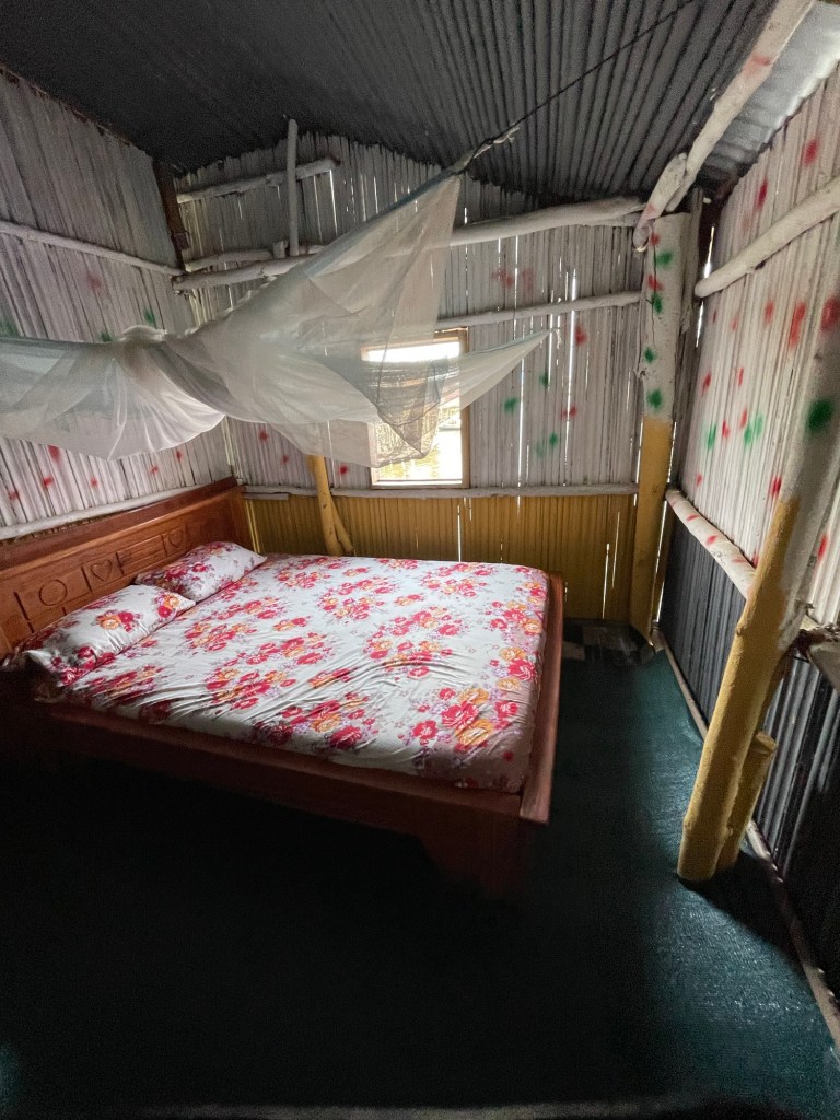 I was not feeling well. The first stop was someone’s house. This woman is an entrepreneur. She opened a souvenir shop shop, sells beverages and rents out two rooms with bathrooms. My guide, started to say we can see the toilet first and I immediately said, can I use it? Lol. Yes a toilet, no pipes to or from the toilet. I know the drill, just pour water from the nearby bucket to flush, like India, but they have pipes, this just went into the lake where they fished.