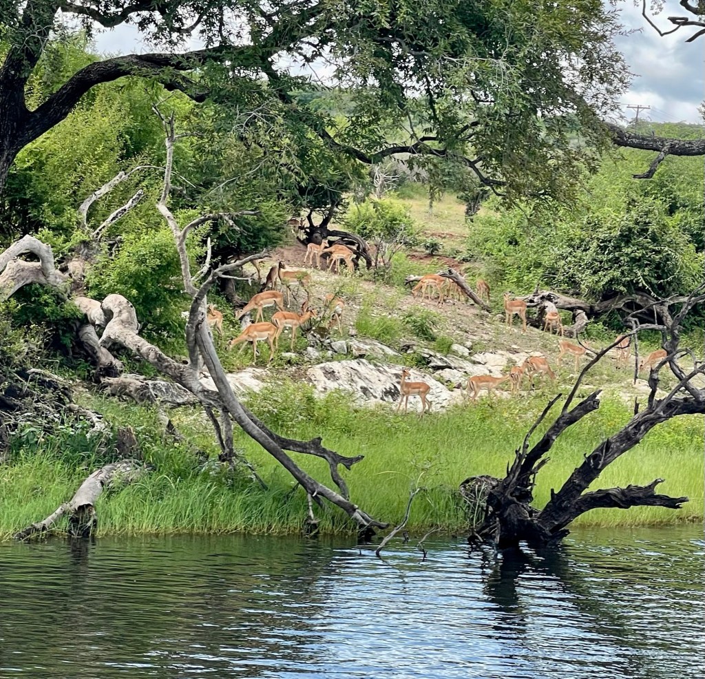 Today is Botsawana day. Up early to catch a shuttle to the border. Same drill. Get stamped out of one court and stamped in the next. Pretty easy. It was an hours drive. Got on the two deck boat and cruised for an hour. Saw some hippos and water buffalo and birds. Kinda boring. Buffet lunch of nearly inedible over cooked food and then it began to pour. I chose not to do the game drive. Animals hide when it rains. Drive back going through customs and immigrants again easy. I asked the driver to drop me in town. Thought I might get a beer and shop. Too many people trying to sell stuff and then if you don’t they get mad. So back to the hotel. It was sunny until I got to the pool so hanging with my new fav bartender Chris!