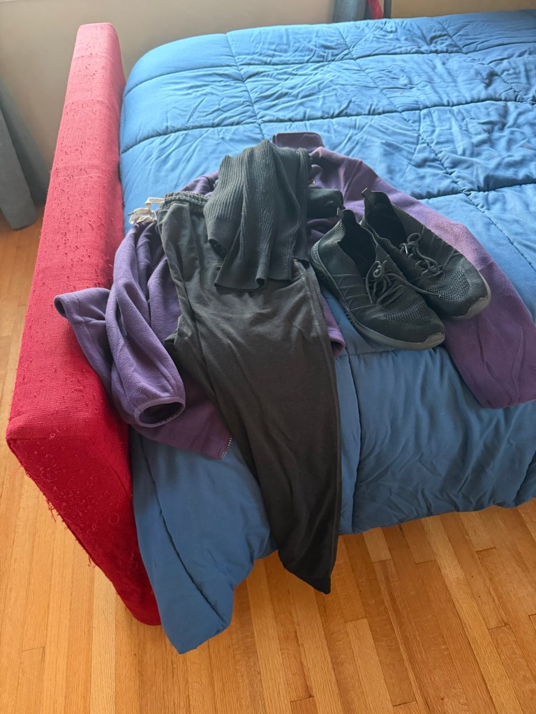 Here’s my last pile of stuff to get in my back pack.