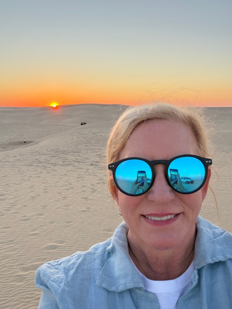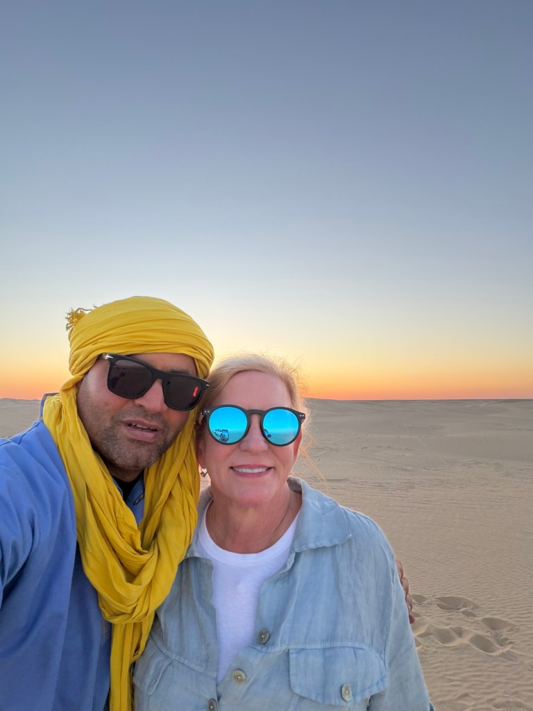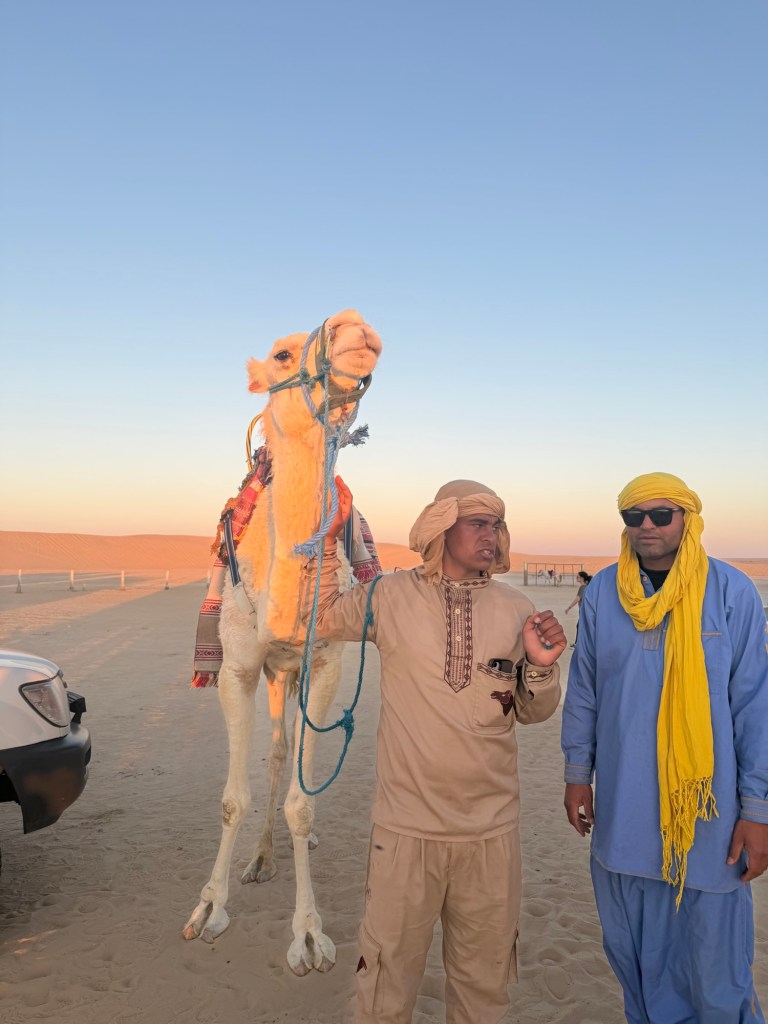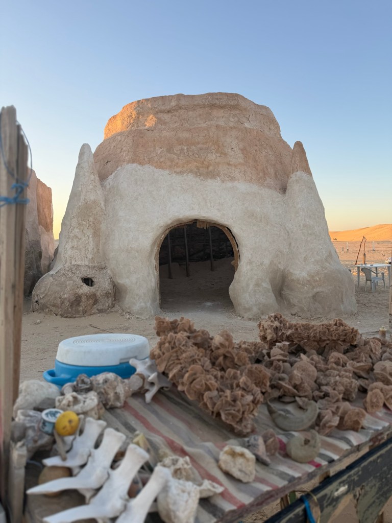 Aziz was my guide. He was a very spirited fun guide. He tried to scare me with his driving but he has never met my brother, but some mom reminded me of rolling backwards in. Bronco in High-school with eight of us in the vehicle and no one was hurt. He drove through the salt fields and dunes. Stopped by some camels and one of the sets for Star Wars. I ate some bread that was cooked in the ash.