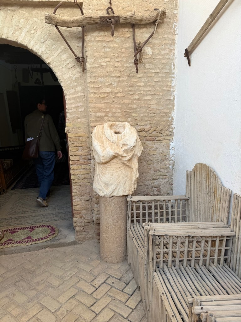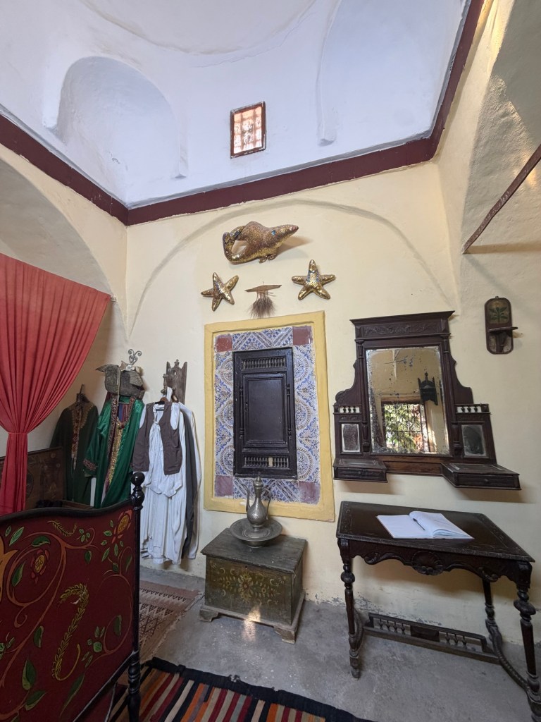 I spent the day relaxing and reading. I made a plan to take a taxi to the Medina. The concierge recommended leaving at 4:30 pm. I had prepared with ChatGPT what gate to start at and where several restaurants I might try. I had this translated to Arabic which was very helpful. The Médina had beautiful brick structure but it was kinda empty. I found a museum so I went in. It turned out to be pretty interesting. The guide spoke pretty good English and French when two others joined us.