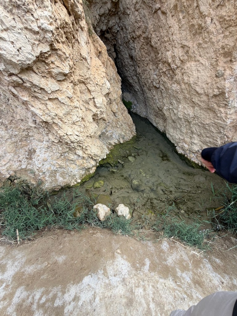 It was just a little up hill, through a crevasse and down to the spring. While driving Aziz pointed out the hot springs, steam coming up from the ground, it had to be cooled before used to irrigation. Some of the Date palms and other vegetation thrived on Natural water and some with irrigation.