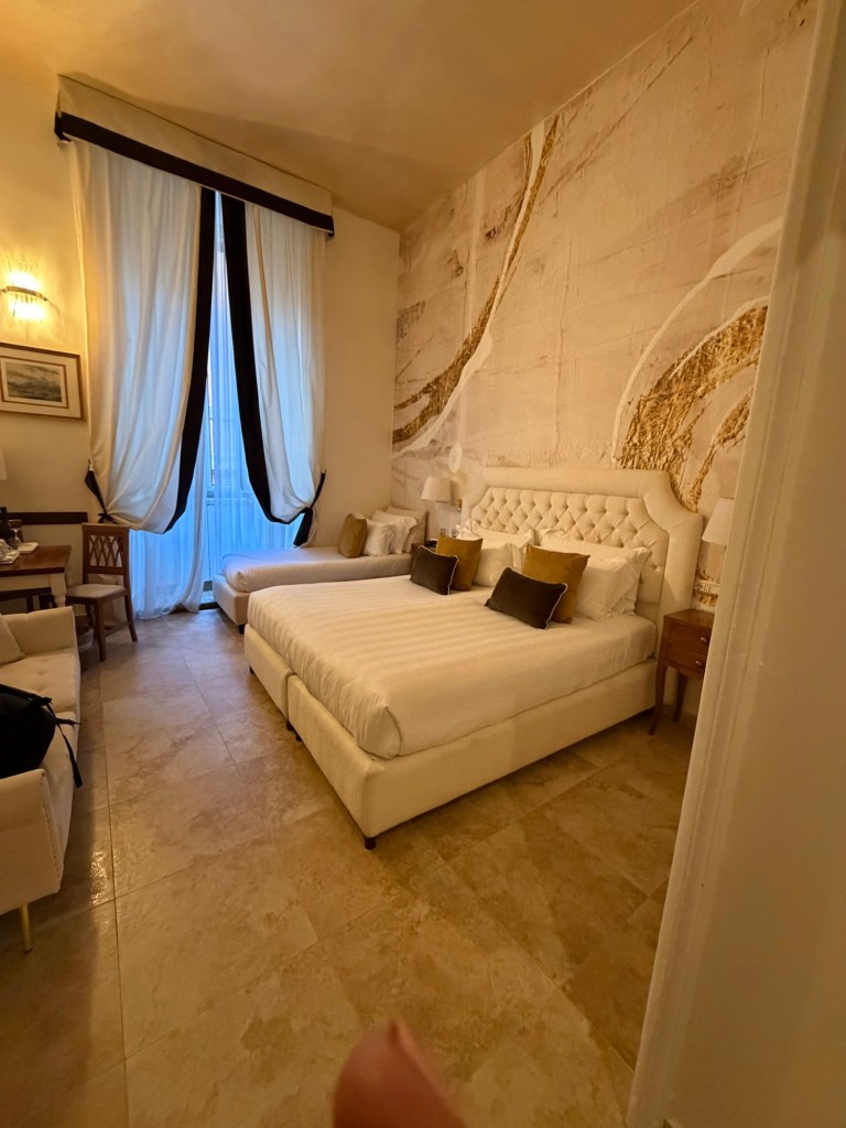 I can’t believe you that yesterday worked out so perfectly. Flights were mostly on time. I had plenty of time. When I arrived in Rome, I had downloaded an app similar to Uber. Under here is convenient for Americans because it’s already downloaded in our phones for the most part but it’s way more expensive. I could take a train or bus with the same timing but I tried Freenow. Same old thing as lift an uber. They keep saying they are 5 minutes away. I told my guy where I was and he said fine then wanted me to go to a different terminal. Who knew they were so close. I canceled and got in a Taxi line. It’s 55 Euros either way. Sometimes public transportation is interesting, but not so much here because everyone is a tourist.
