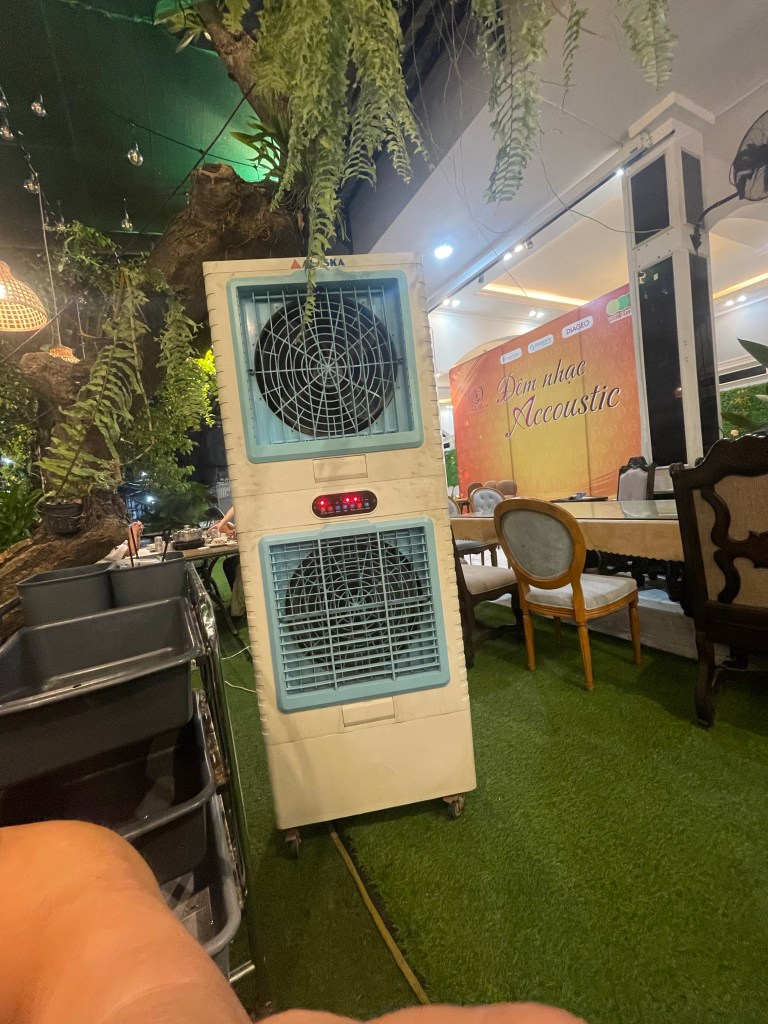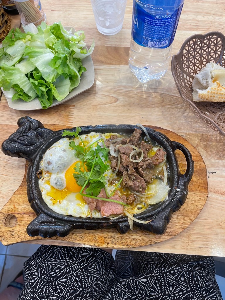 Flight was an easy 1.5 hours. Negotiations with taxi people. One guy was trying to grab my backpack off of me to put in a car. He got dagger eyes! We knew it would be about 45 min drive but this guy couldn’t find our place. We couldn’t get internet so it was difficult. We finally suggested that he call the hotel I think he called them about 4 times to get direction. He graciously took the 500.000 dong we agreed upon, but was visibly pissed. Hotel was good enough. A little dirty we realized in the morning. We walked down the street to a BBQ place, wine and seafood. Back to hotel, with our own entertainment.