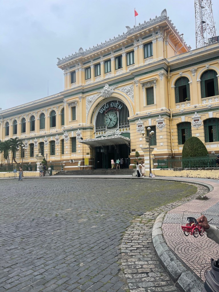 It started to rain. Again we waited for a taxi. It took awhile so by the time we hailed one we forgot where we were going! I told him Emerald Pagoda, showed the taxi driver where, then realized it was the Jade Pagoda, he still didn’t get it so we said, Norte Dame Cathedral, which he understood and it was on our list! It seemed like he took us the long way!! We have learned to be flexible and we are trying to understand that why would they understand us. We don’t speak their language so we should we expect them to understand ours!