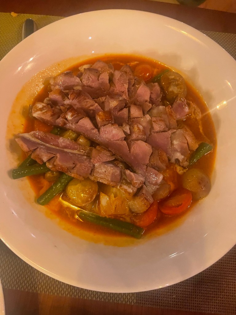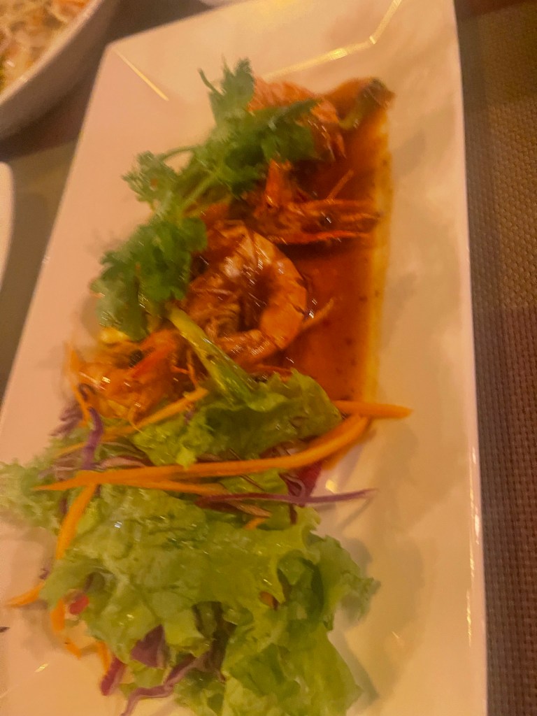 So back to the train story….After wandering around in the Old Quarter, trying to get on a self-guided walking tour, especially looking for the Craft Beer area we walked back to our old Hotel. They had kept our bags. We asked about some BBQ places from our wine store and he suggested back by the beer area. I thought I booked a hotel for near that train station but before we taxied there I decided to check. It wasn’t. The train to SaPa was in a different direction. We still wanted to try the BBQ. Our hotel people got us a taxi for way less than we had been spending. The driver was a little angry when the road was blocked by construction. It looked very close but he was nice enough to go around. As we neared the hotel, we could see the map showing the end of our destination and no hotel. The road was getting very narrow. Again he was nice enough to check and see if there was a hotel. There was. No need for passports since we would leave around 9pm. Had a little wine and went out to look for BBQ. As I have learned in the past, train stations can be confusing and the booking site said that it was. We were happy to see that the train station was, indeed, very close to the hotel about a half mile. We checked at the counter, right place, right tickets. Be back at 9:20. I had been arguing with a Viator person about our booking. She wanted name birthdate, passport number etc and we gave it to Viator already. We had a confirmed ticket, paid for with a code to scan. We left in search of BBQ. We thought that we may have seen one across the street from the station, but you never want to eat so close to the station, touristy. Well we walked up and down streets, looking at and vetoing many restaurants on the way. We wanted BBQ! All of a sudden we were at the Prison that at we had been at earlier in the day! Executive decision, let’s walk back to the old hotel and have the BBQ we wanted. They had been closed when we were there earlier. Got a bit lost on the way, damn GPS. This has happened before and why the Hell don’t I get SIM cards? Mostly because I don’t understand them. I had one in Saudi Arabia and it was a pain in the ass to get and to put in my phone but they did it for me. As we got closer, saliva running down our chin ( was Rabies hitting so quick) it was still closed, wait, no, it wasn’t! We were able to sit right down and order. Three choices small, medium and large, a small burner was on the table they brought sterno, lit it and put two little trays with sauces on the burner. There was some oil. Then a platter of raw beef and chicken, another with lettuce and other greens, onions, zucchini, okra, eggplant and tomatoes and a basket with two baguettes and a small sealed container with margarine. Watching others we just started cooking up the food. Oil splattering everywhere. Was it a great meal? Not really but fun!!